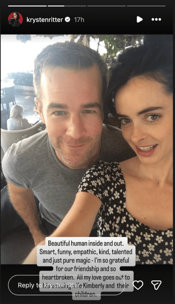 The Dawson’s Creek star’s friend Nikki Reed wrote a particularly long message. “You beautiful soul. Anyone who had the privilege of knowing you is forever changed by you. Your depth, your presence, your unparalleled love for your family,” she wrote. “Oh James, you are so so so deeply loved. And so so deeply missed. My heart aches and I’m sure the ripples of those aches will be felt forever. And Kimberly, we are all wrapping you and those sweet babies in love. My special sister, you and James are the greatest example of love I’ve ever known. Here for you in every way, forever.”